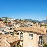 ベッドルーム1室のHoliday Apartment Rokkaria ヴィッラシミーウスはPiazza Del Mareから徒歩で5分以内の場所に位置し、都市の景色を見渡せます。